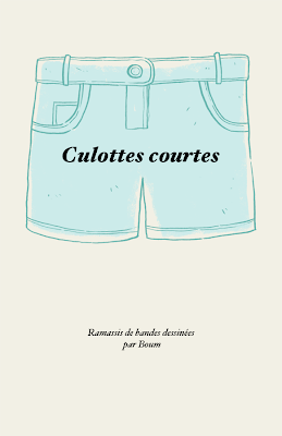 | C'est tranquille par ici, hein? C'est surtout parce que je déverse mon surplus de créativité sur mon nouveau Tumblr qui rend ça pas mal plus facile. C'est pas que j'aime pus Blogger, c'est que Tumblr a... plus de visibilité, disons. J'vais continuer d'écrire ici quand même, surtout pour des nouvelles, mais si vous voulez me voir dessiner, vous devriez sans doute aller voir là (ou bedon mes bédés, j'en fais toujours, hein). Une autre petite annonce pendant que j'suis ici: je vais être à Expozine les 26 et 27 novembre, à y vendre mes Boumeries et un nouveau petit fanzine intitulé Culottes courtes, une compilation de 32 pages de bandes dessinées de 2005 à 2010, en couleur siouplaît. En espérant vous y voir! (V'là la couverture pour vous faire saliver un p'tit peu.) | It's calm around here, isn't it? It's mostly because I've been pouring all my creative juices towards my new Tumblr which makes it much simpler. It's not that I don't like Blogger anymore, it's that Tumblr... is easier to keep track of for everyone, I guess. I'll keep writing here, especially for announcements and such, but if you want to see me drawing, you'd better off this way (or you could always check my comics out, I still do those.) Other news while I'm here: I'll be at Expozine on November 26th and 27th, selling my Boumeries and a new little fanzine titled Culottes courtes (literally "shorts", as in the wearable kind), a collection of short comics from 2005 to 2010, in colours too. I hope to see you there! (Here's the cover to make you drool a little — don't be scared by the French, all the comics have no dialogue!) |